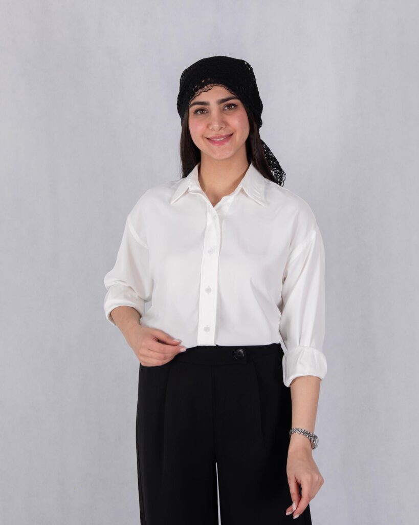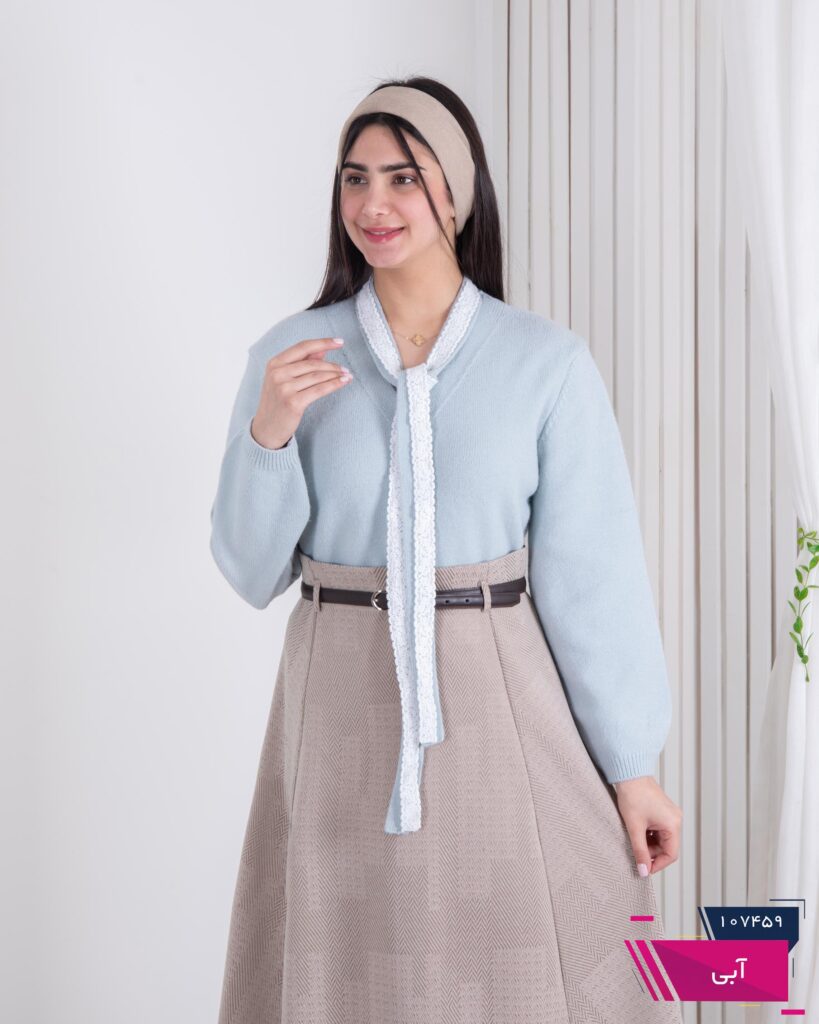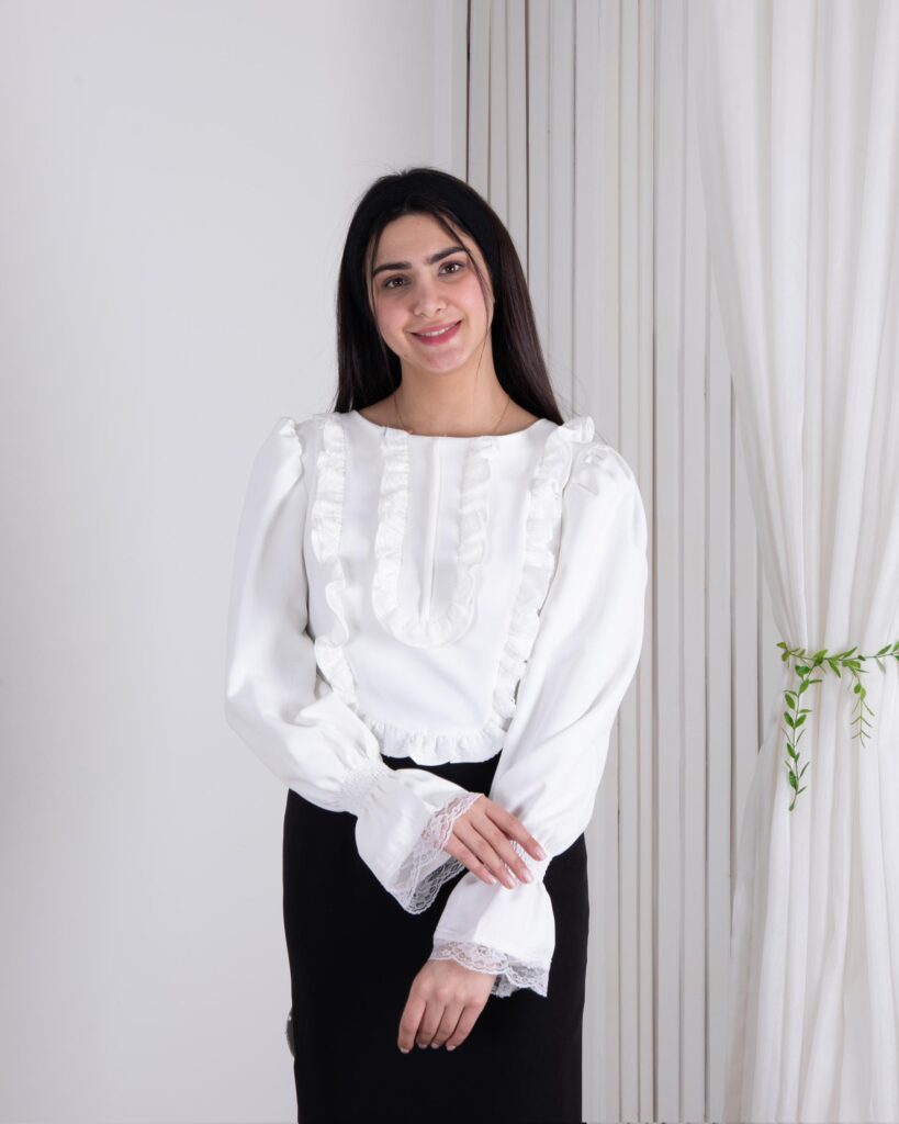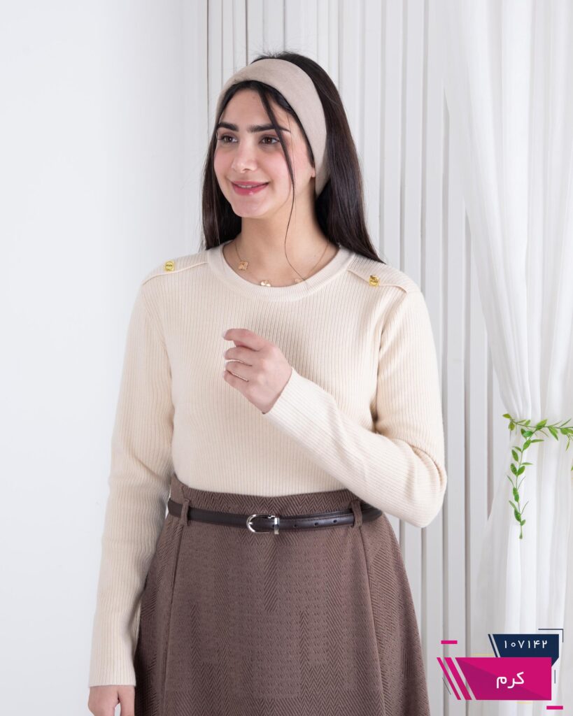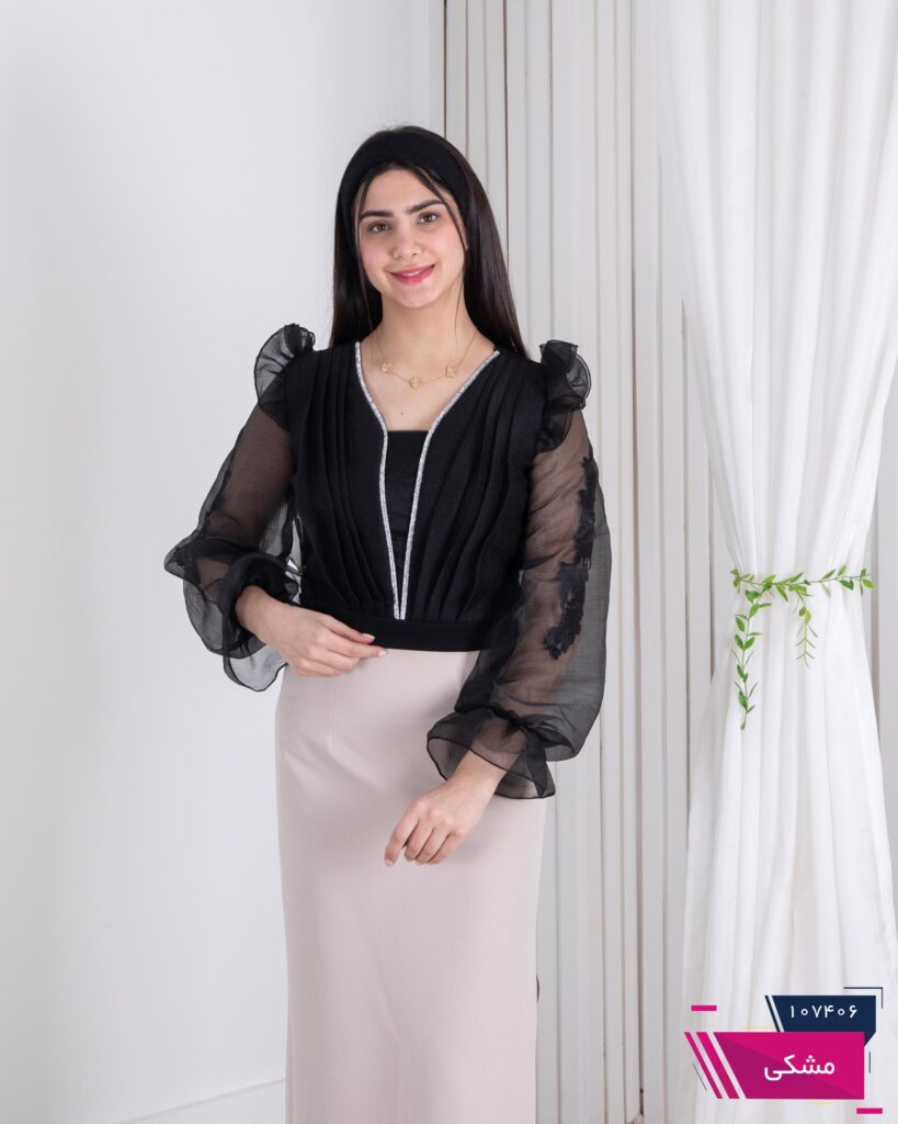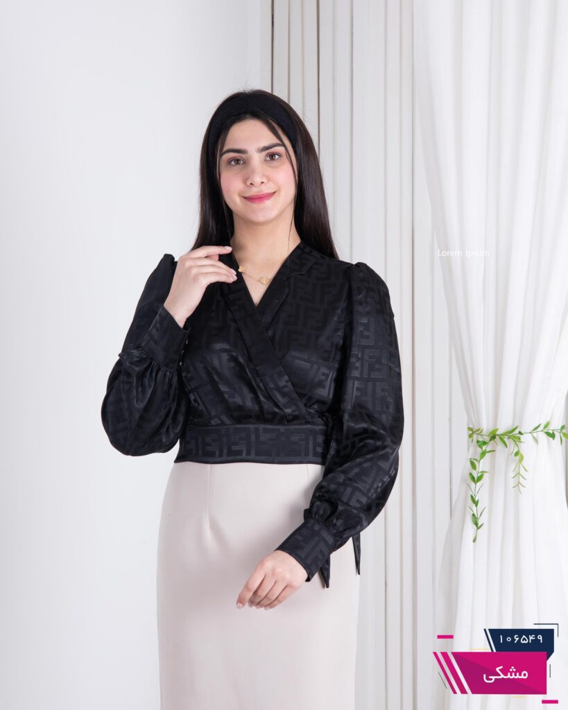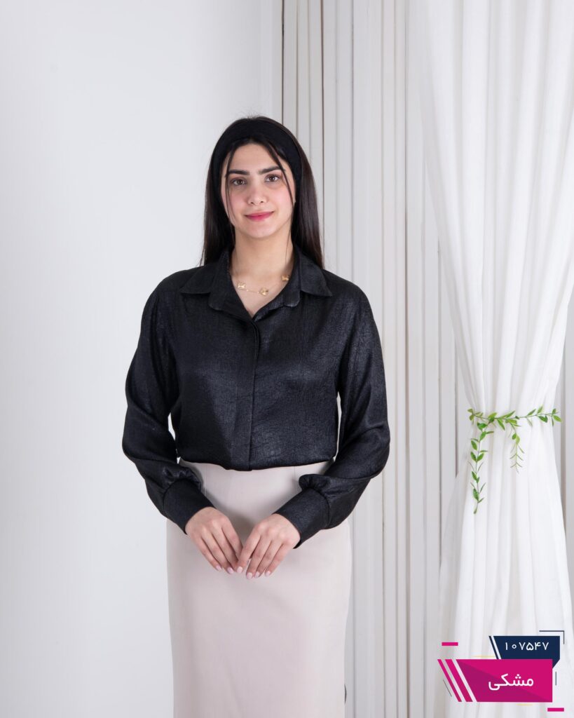 بلوز بافت دخترونه یقه هفت آستین دکمه