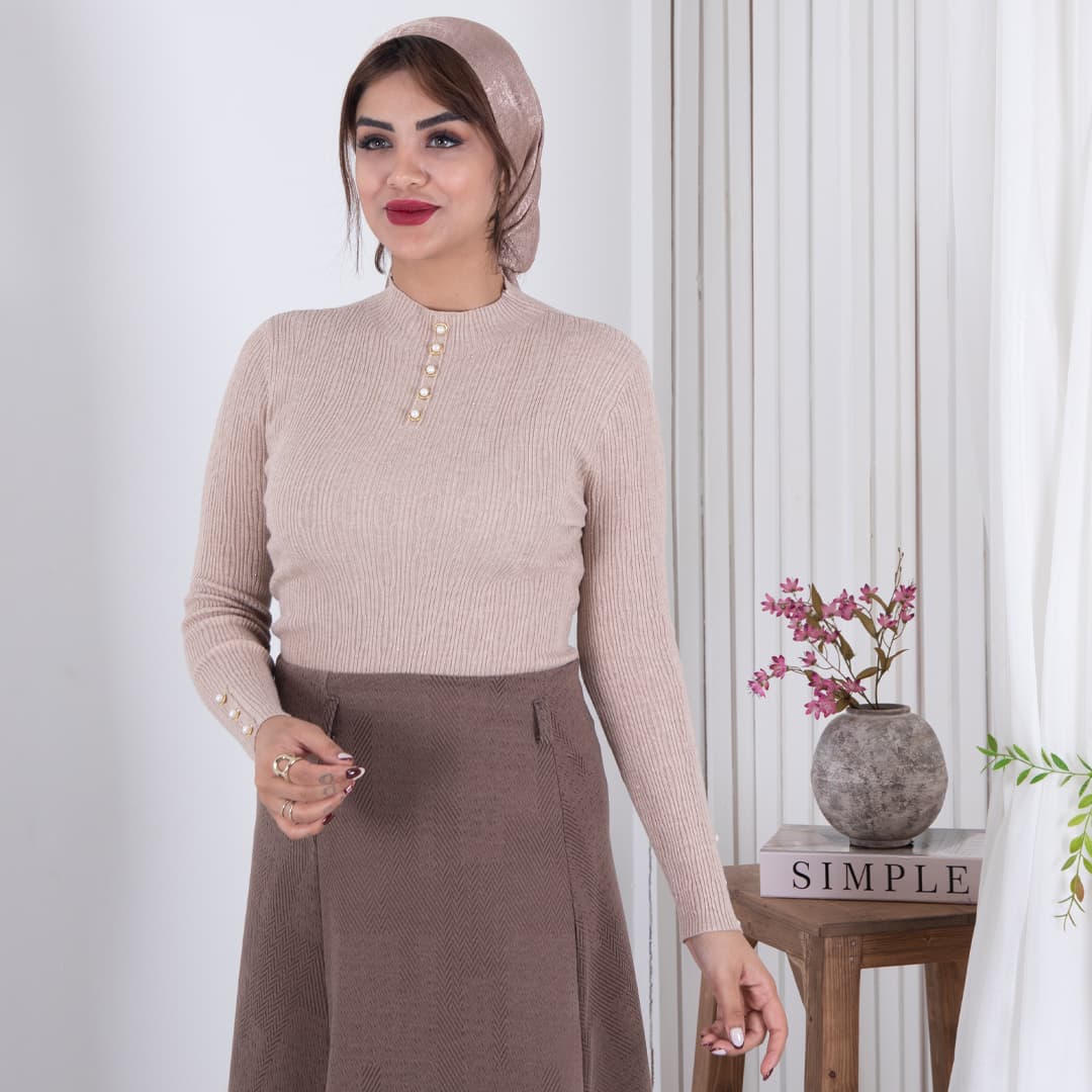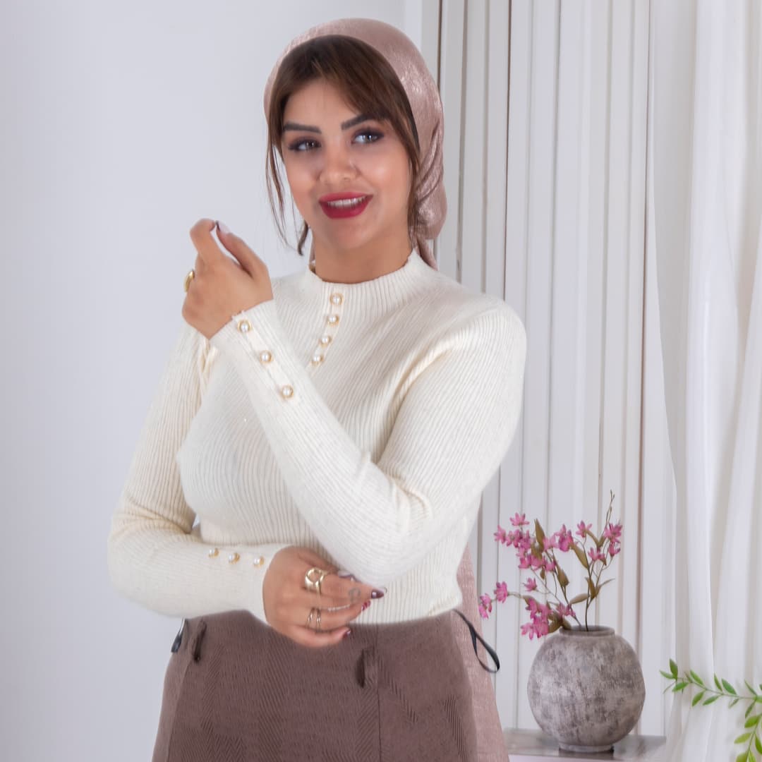 بلوز بافت دخترونه شاین دکمه مروارید