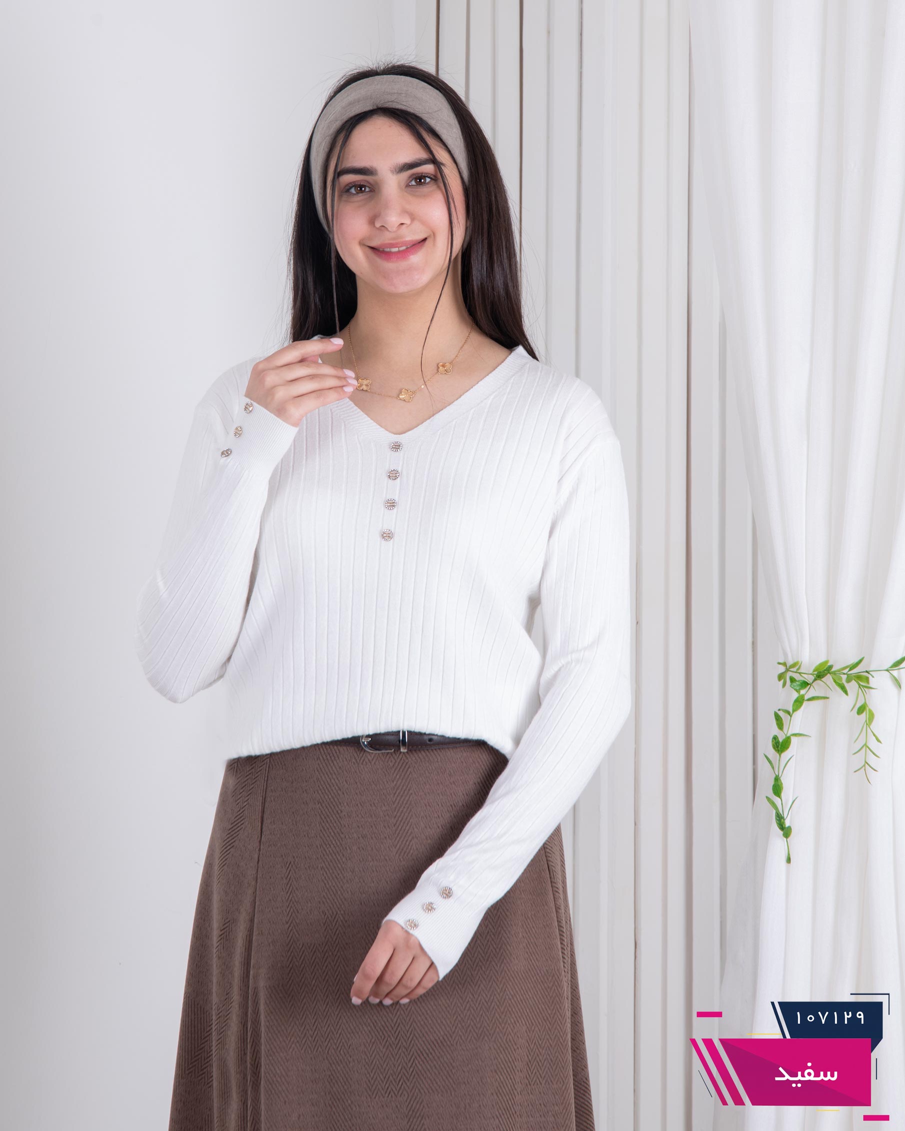 بلوز بافت دخترونه یقه هفت آستین دکمه