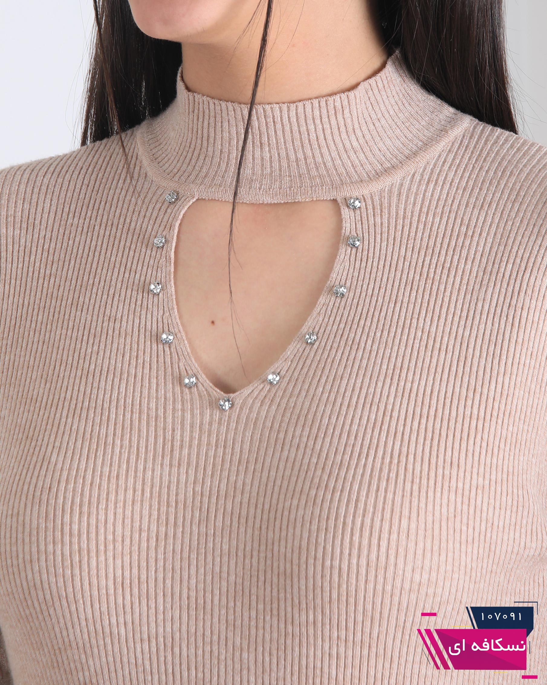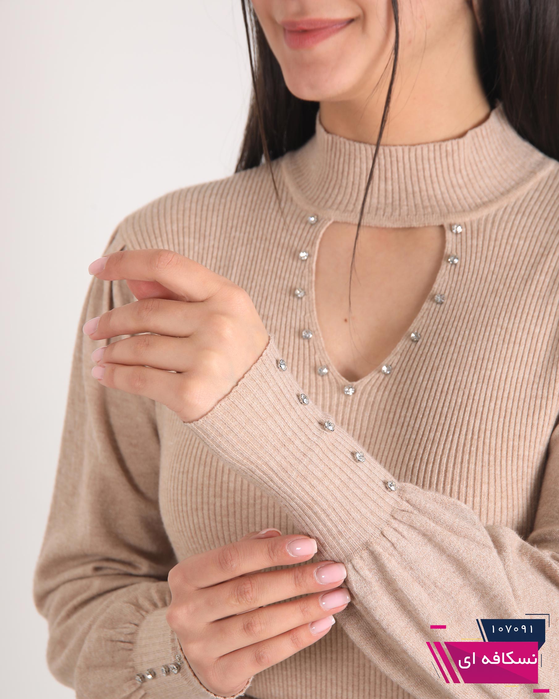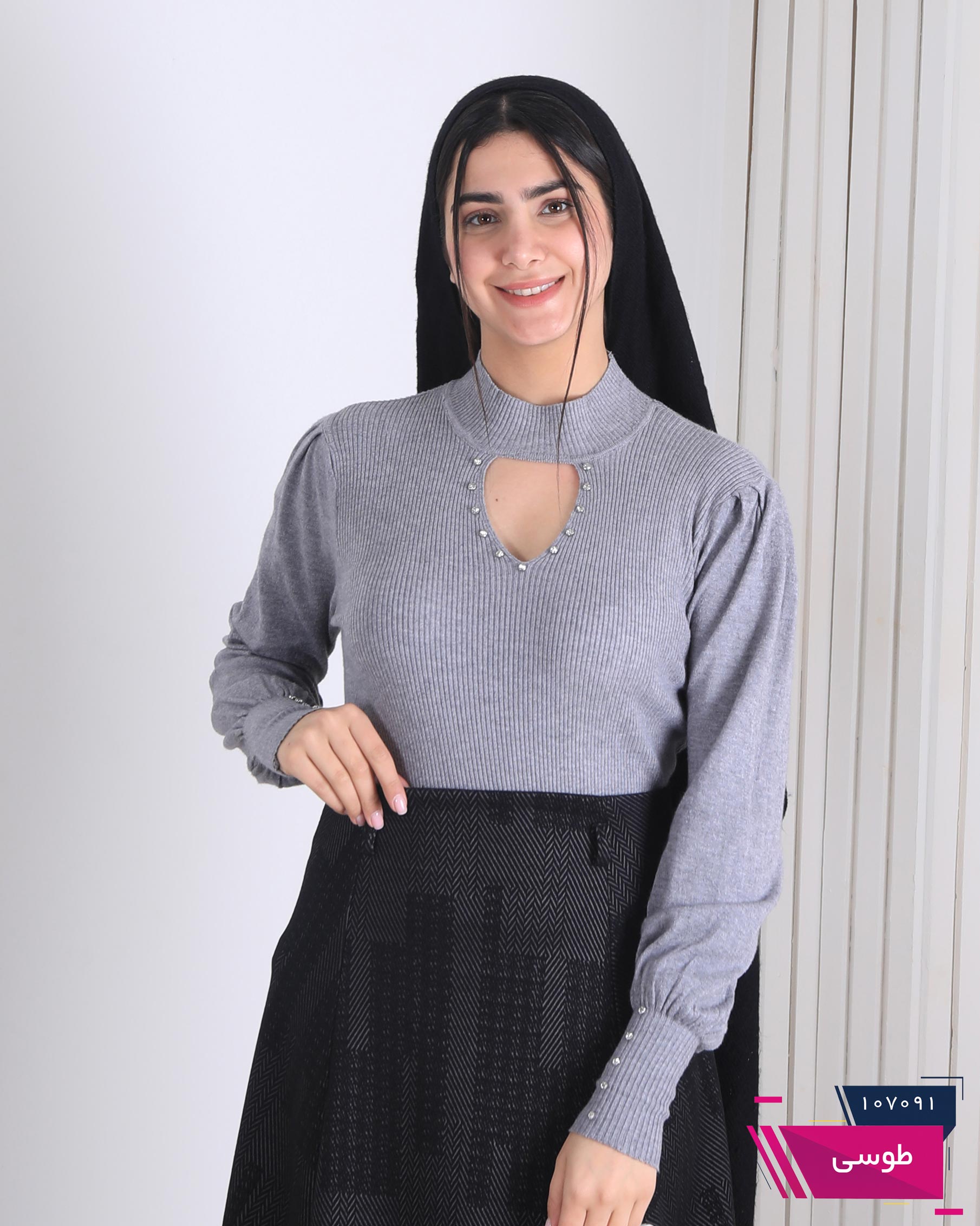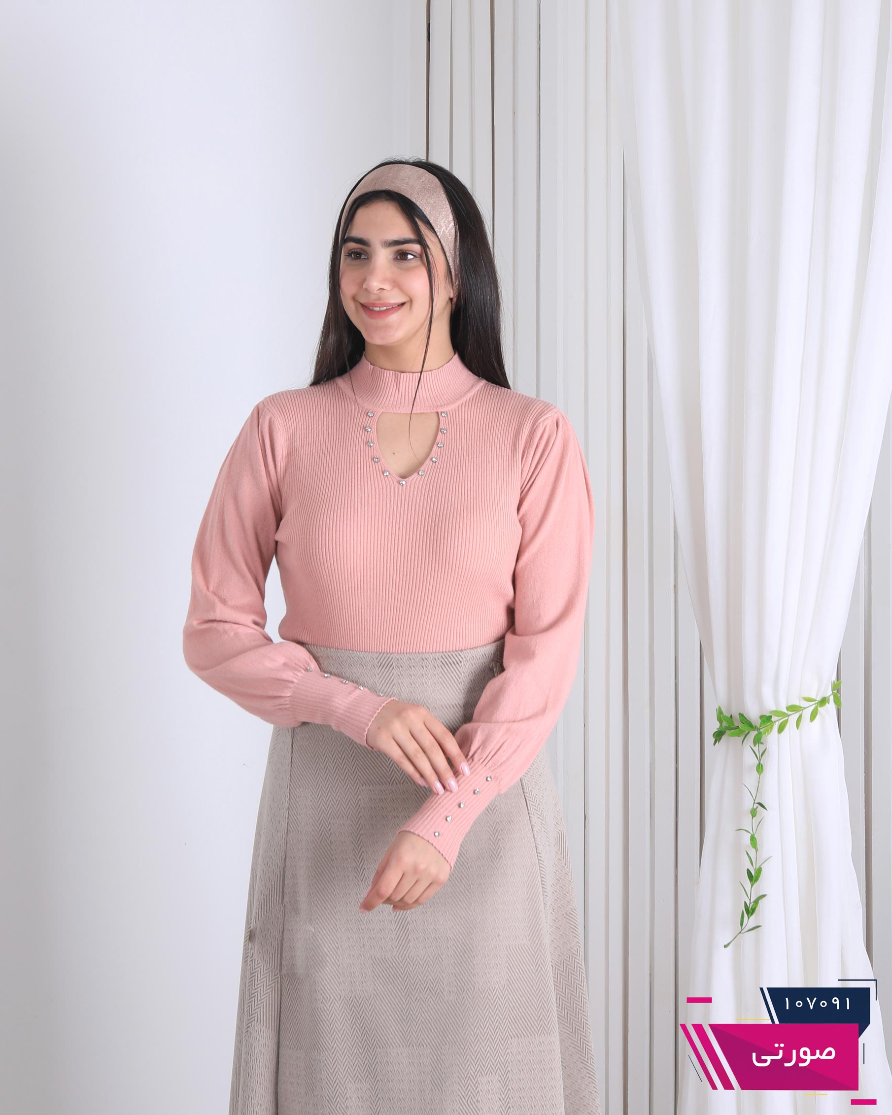 بلوز بافت دخترونه یقه 5 سانت باز نگین دار