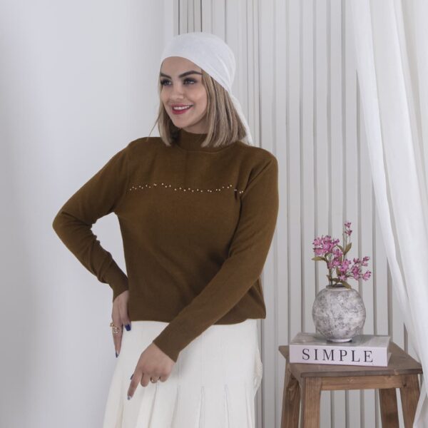 بلوز بافت دخترونه یقه 5 سانت مرواریدی