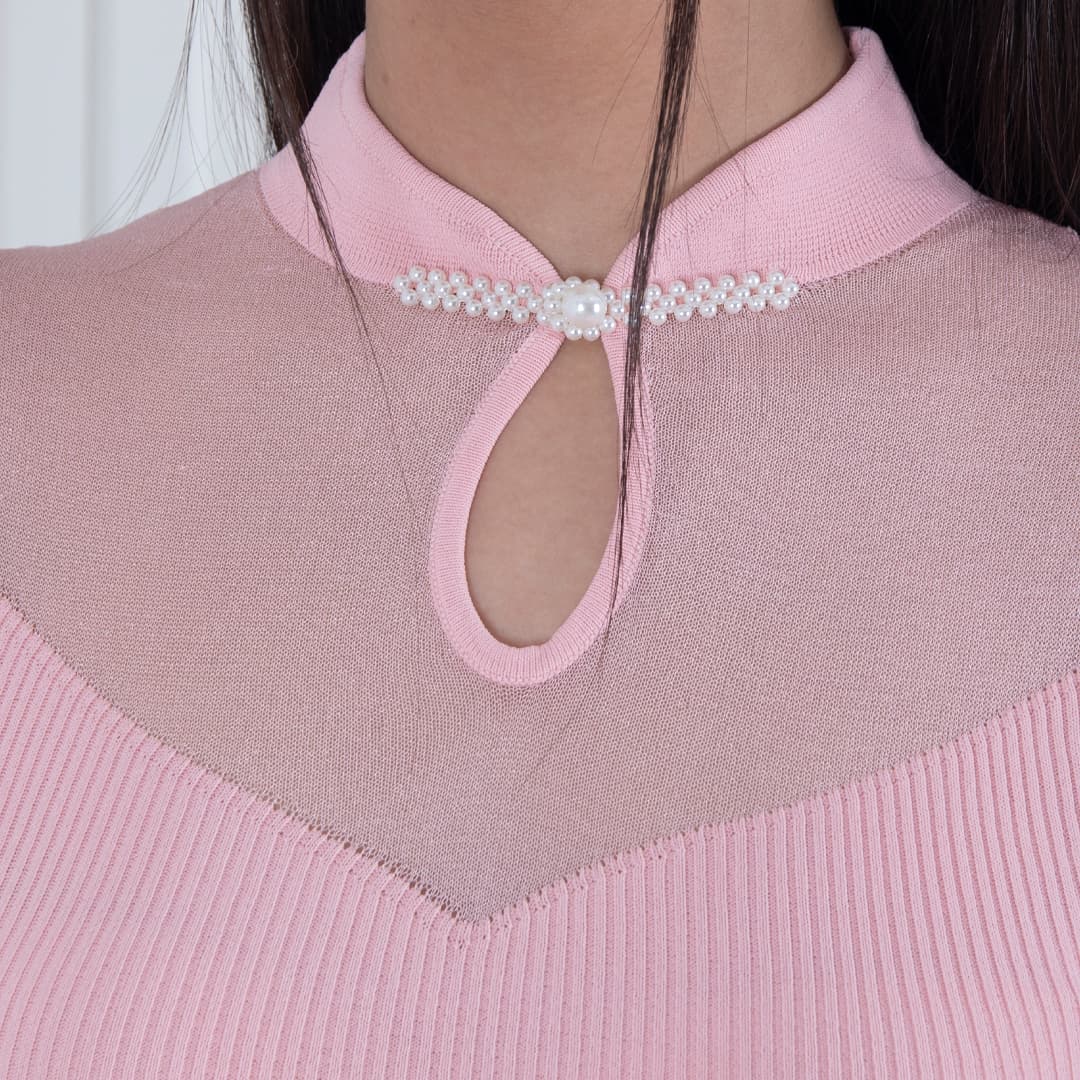 بلوز دخترونه استین کوتاه یقه تور مروارید