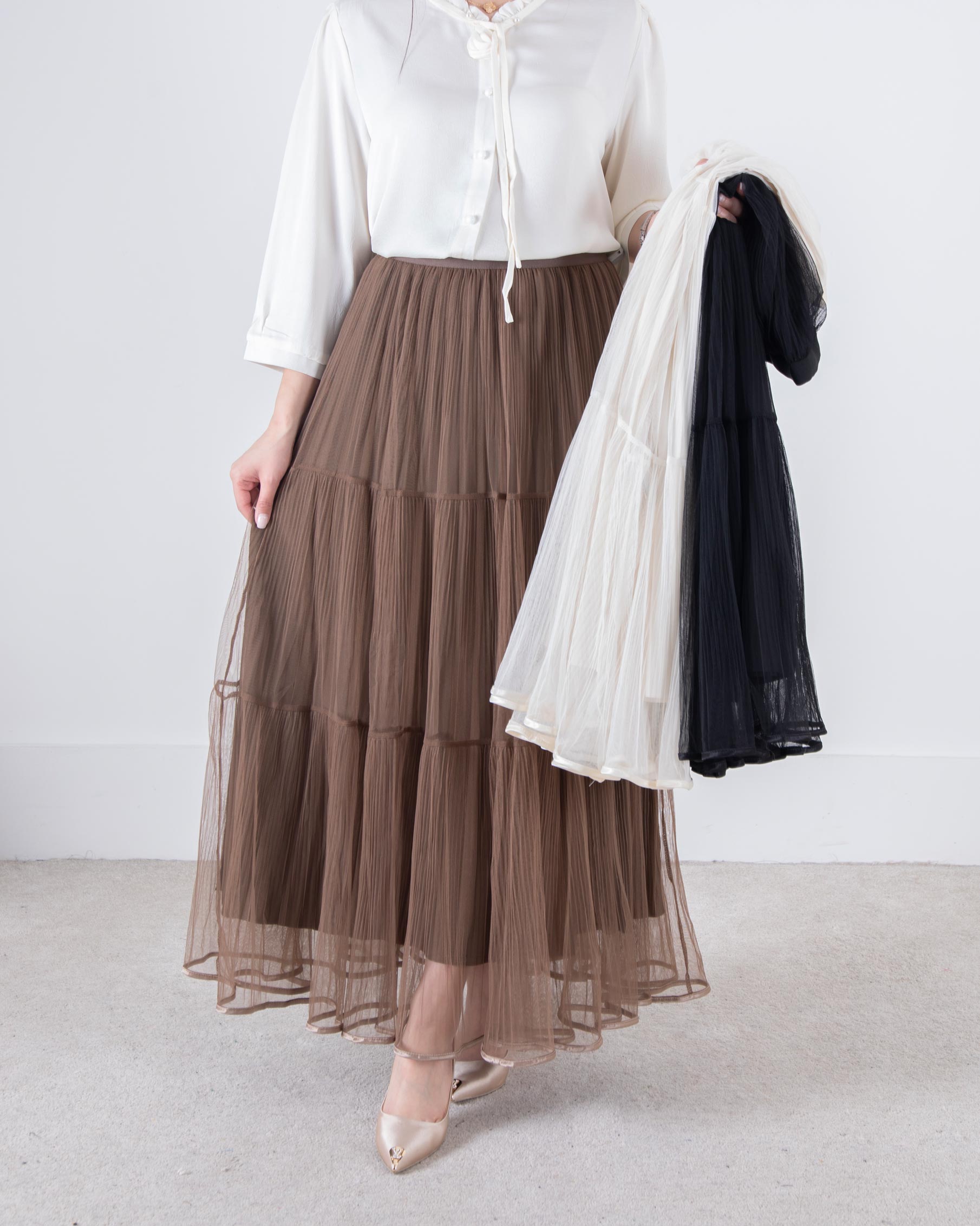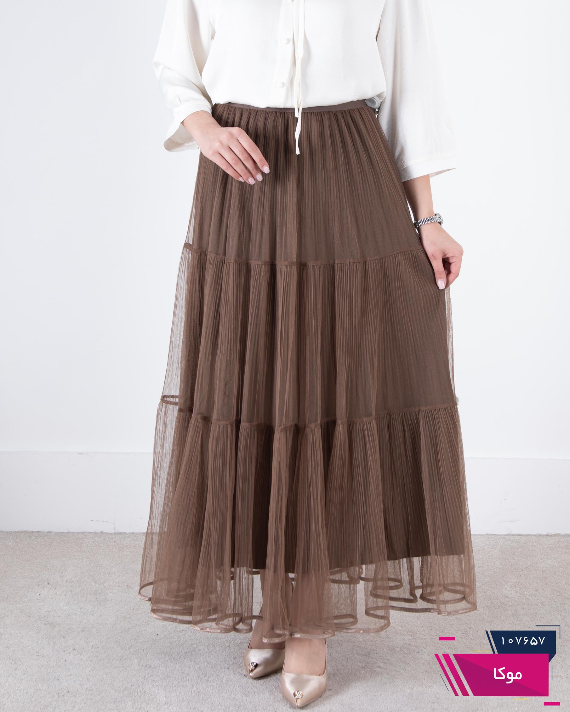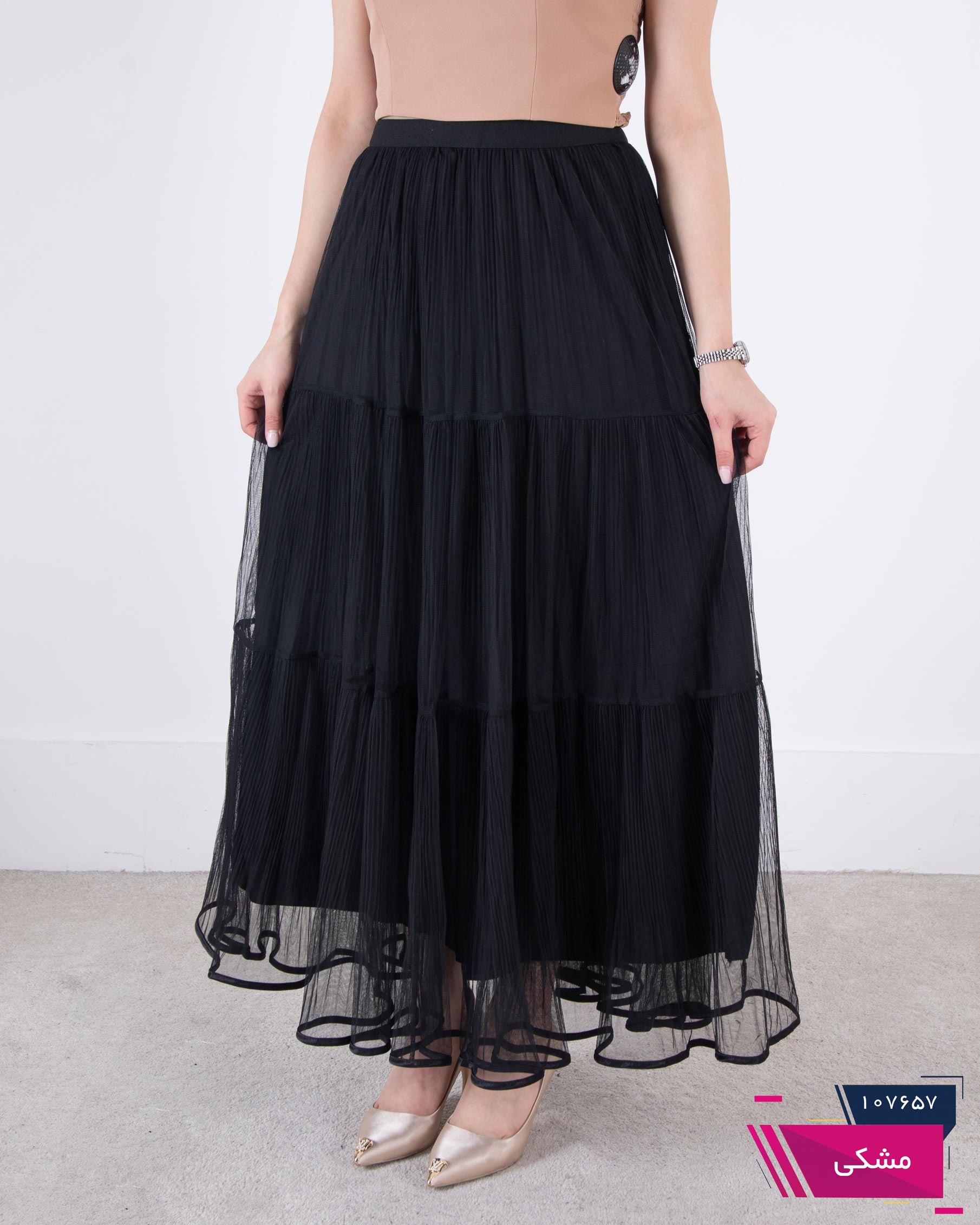 دامن وارداتی پلیسه توری نوار ساتن