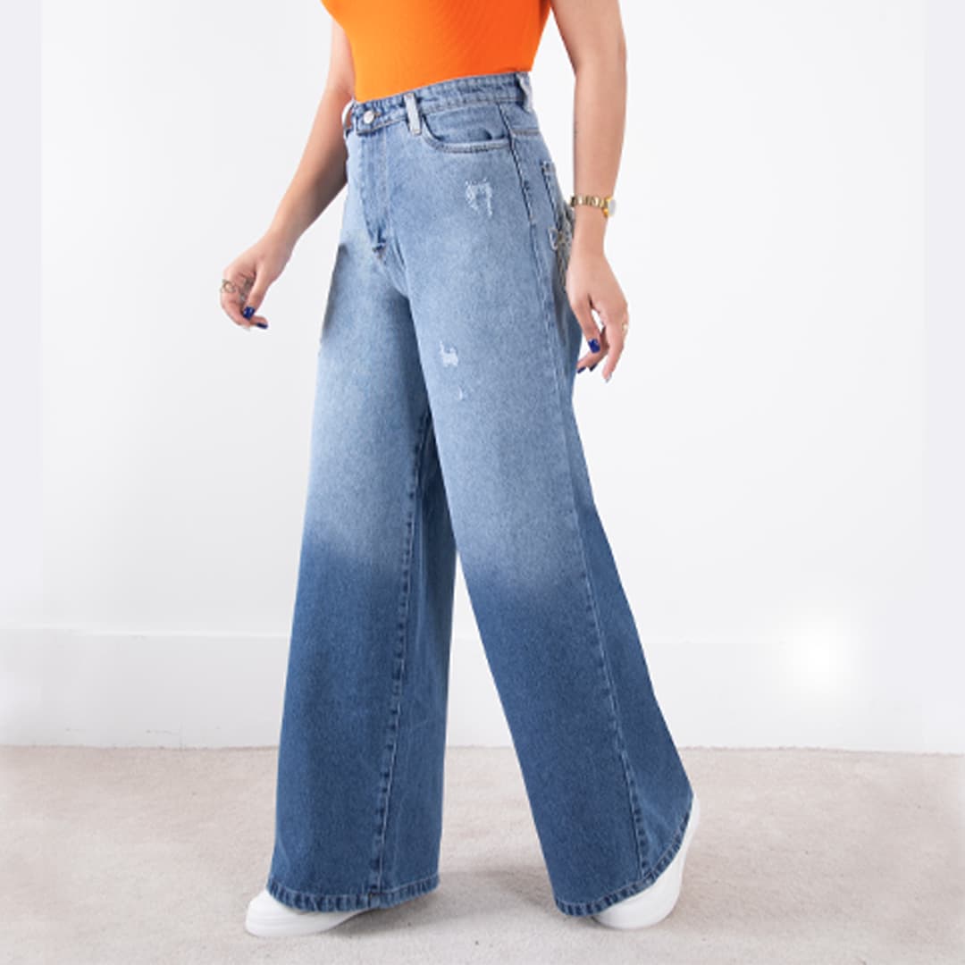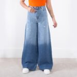 شلوار جین دخترونه فول بگ جیب پاپیون MOBAMO 4057/3