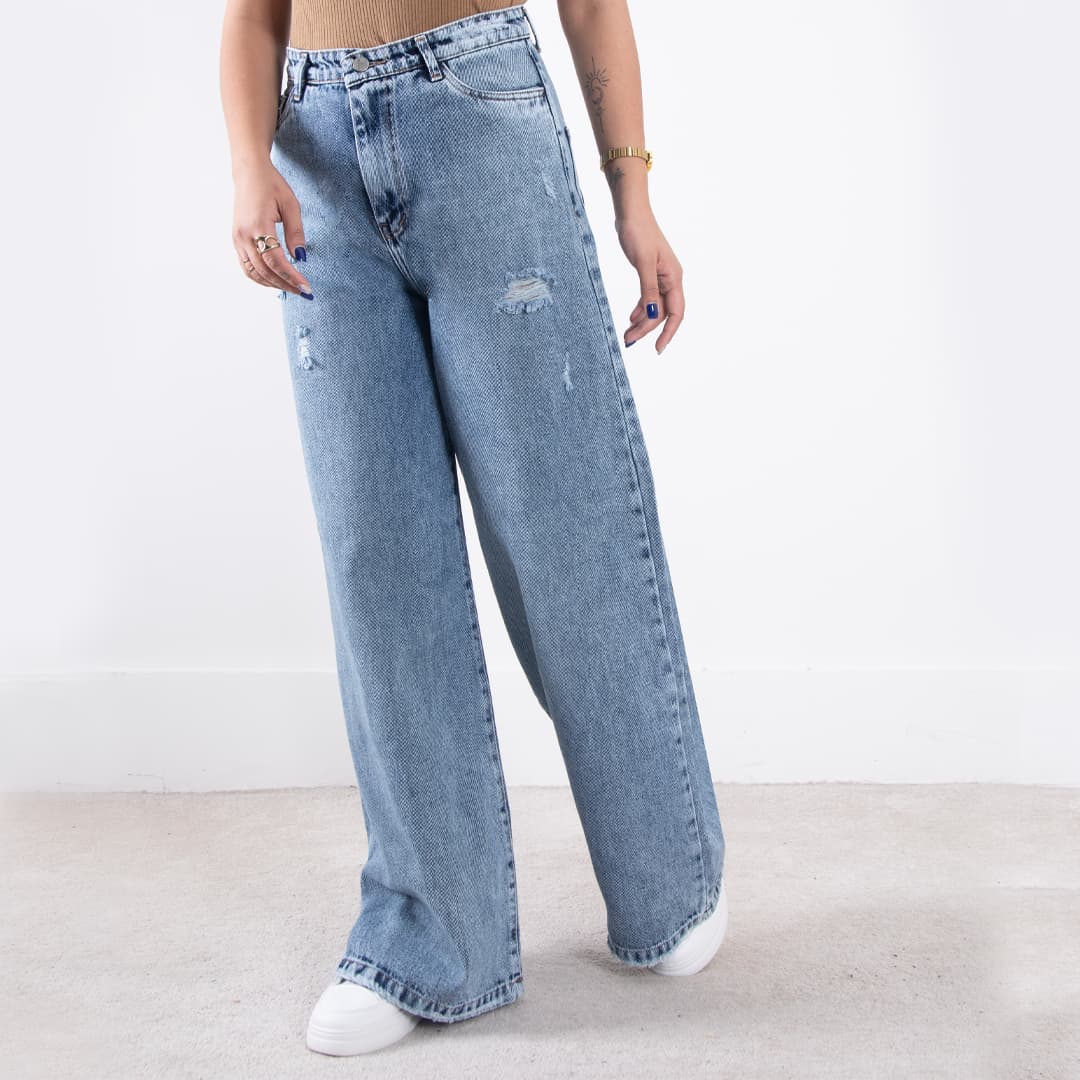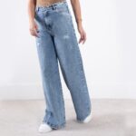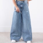 شلوار جین دخترونه فول بگ زاپدار MOBAMO 4097/1