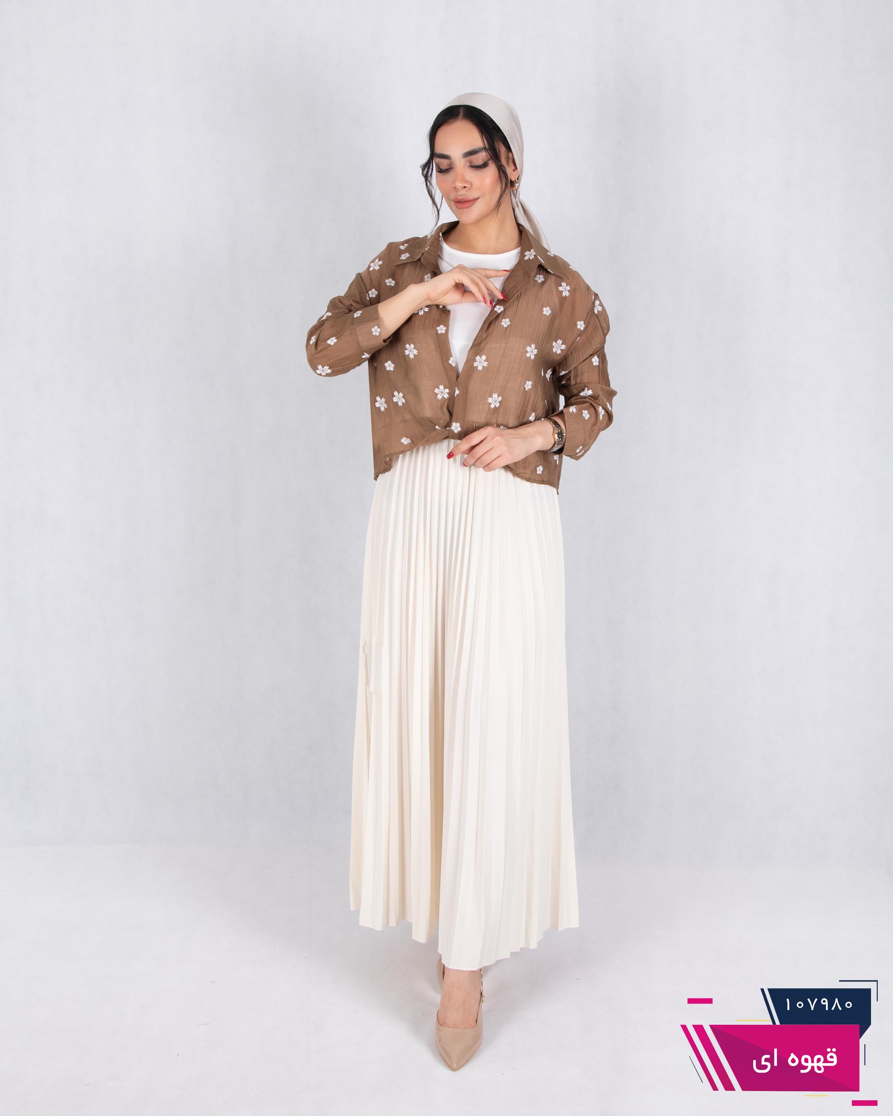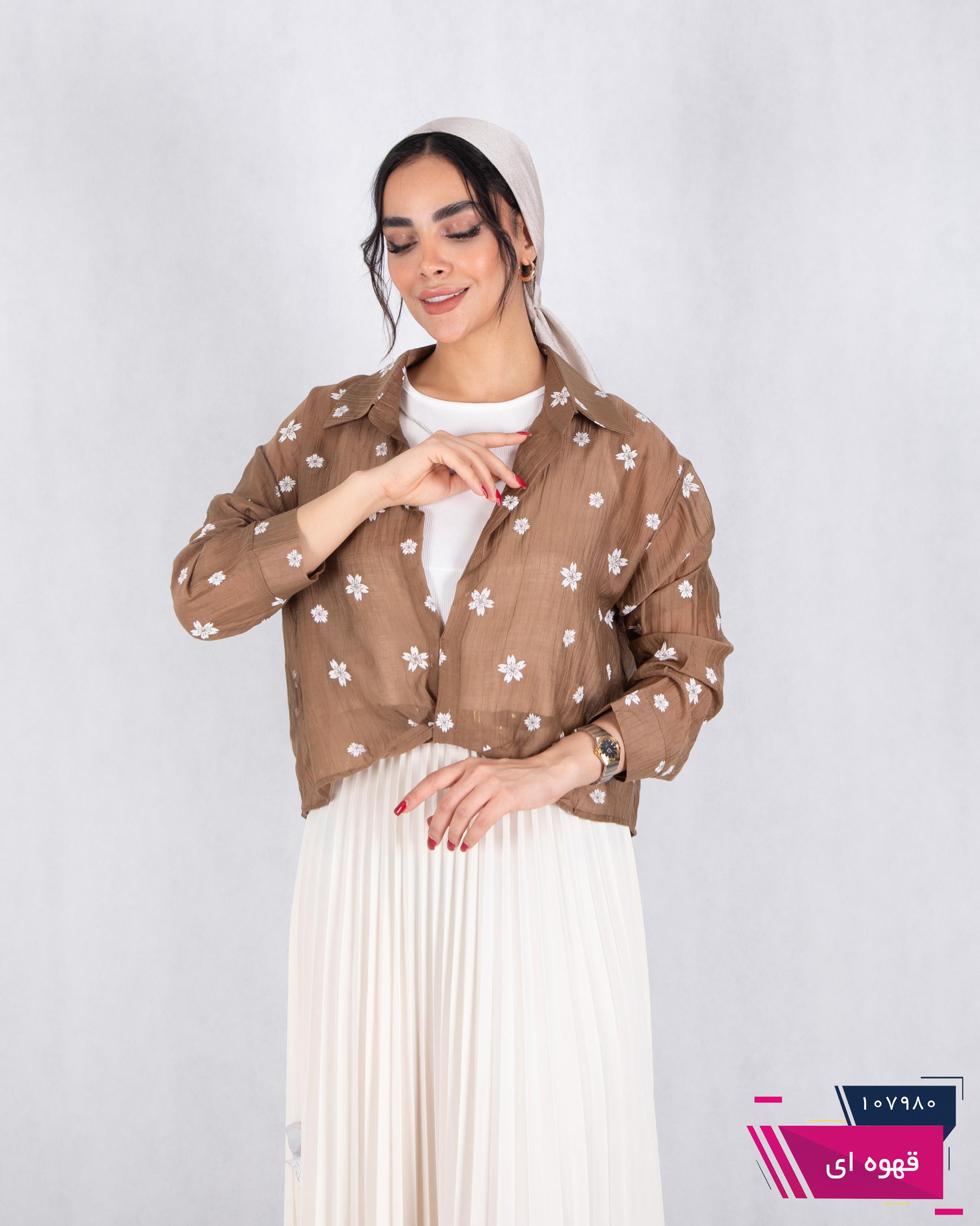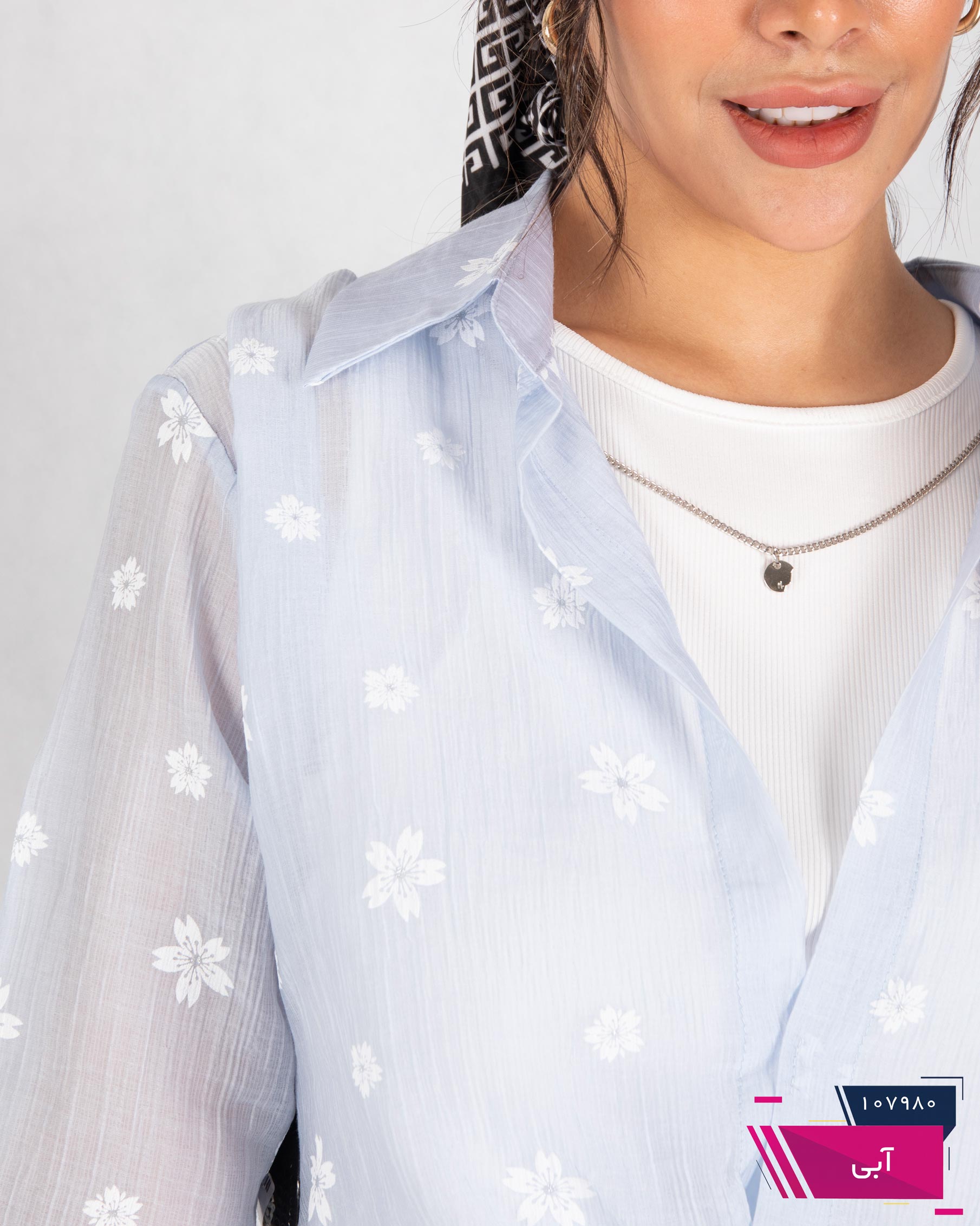 شومیز وارداتی دو تیکه شیشه ای گل QYR