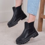 نیم بوت چرم دخترونه دو طرف کش