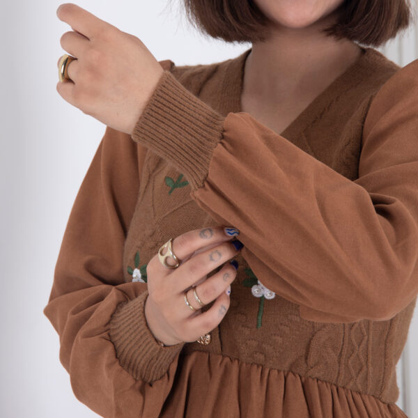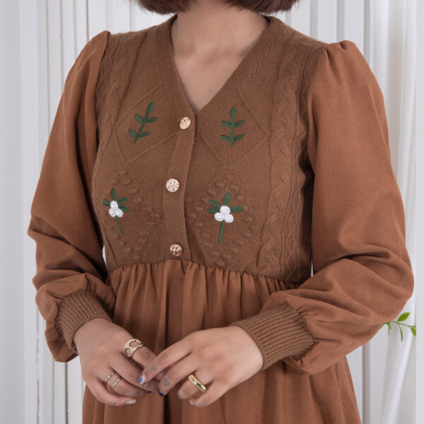 پیراهن بافت 3دکمه گلدار
