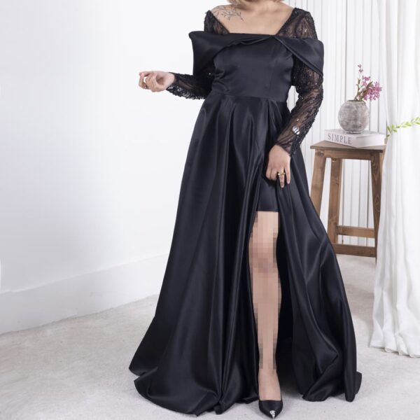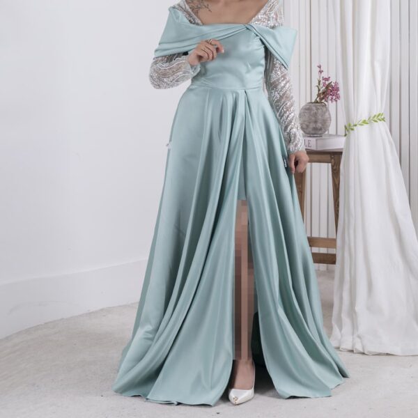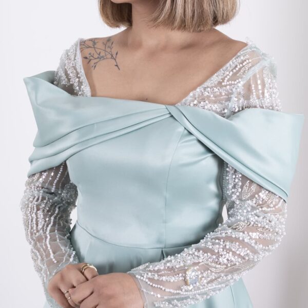 پیراهن مجلسی ساتن آستین سنگدوزیGOLSHAN