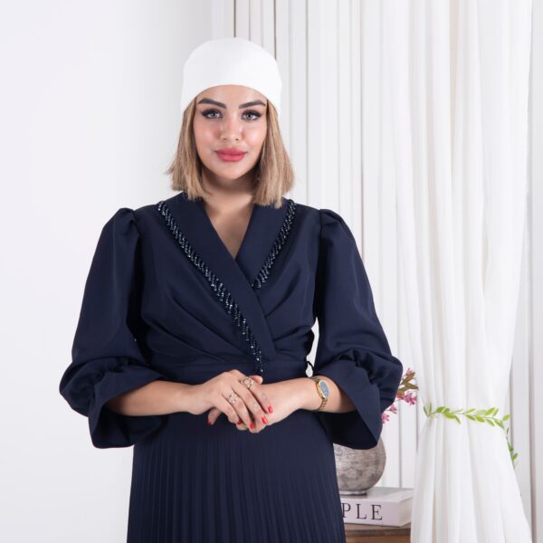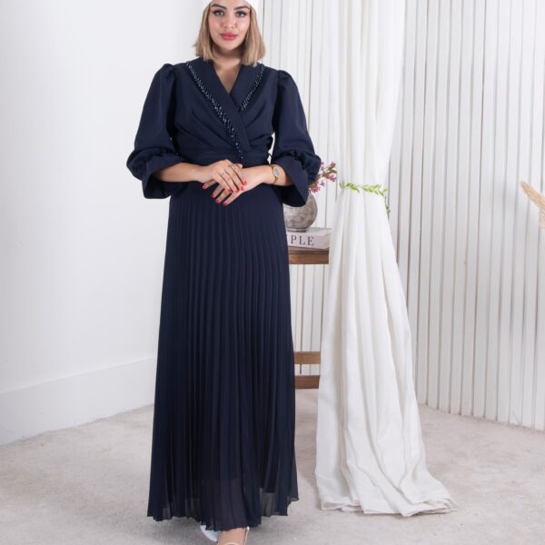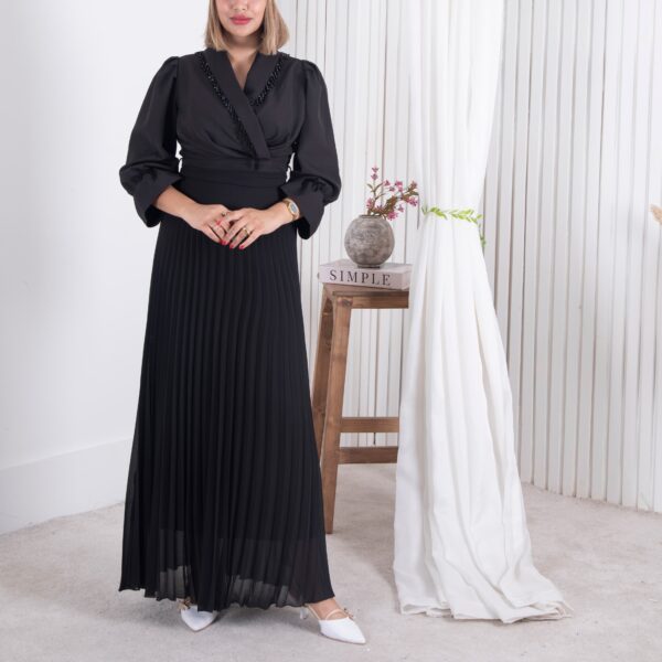 پیراهن مجلسی یقه ملیله دامن پلیسه ZENO