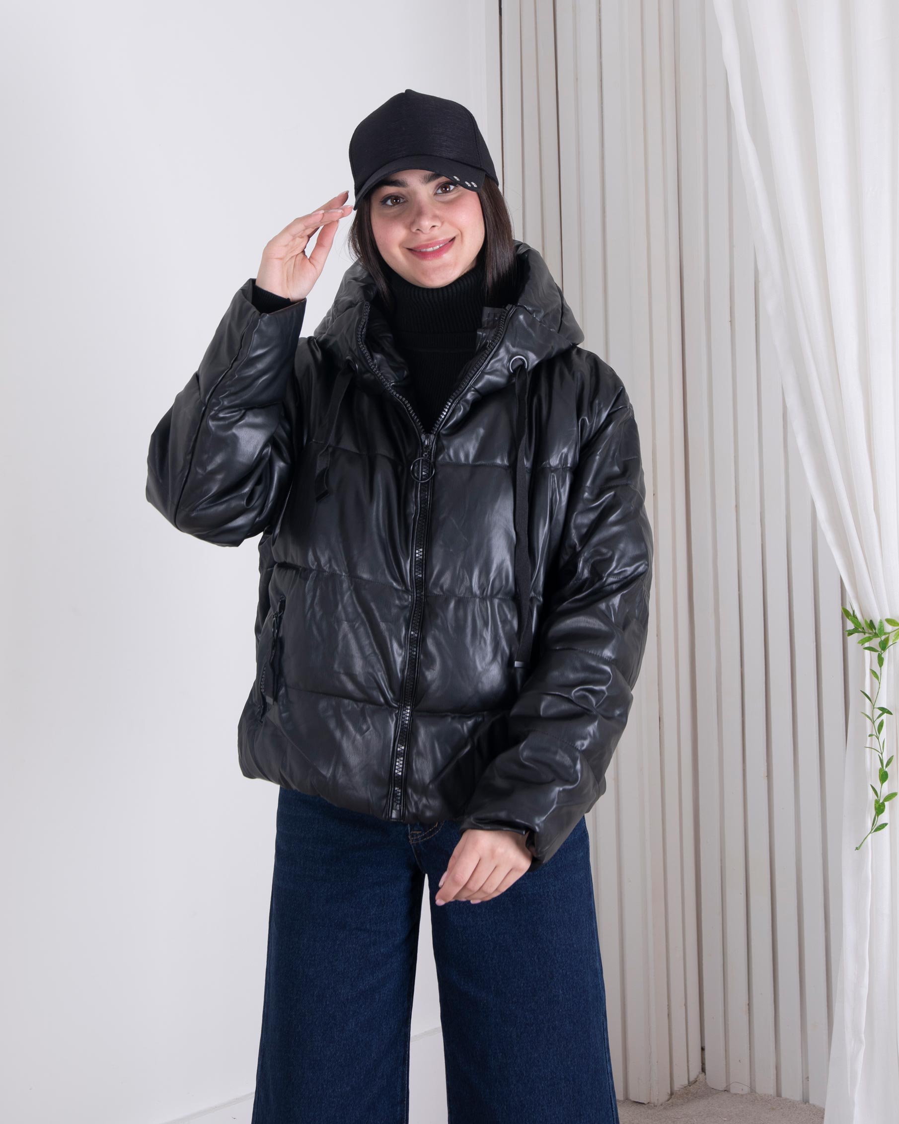 کاپشن وارداتی دخترونه چرم کلاه دار SHEIN